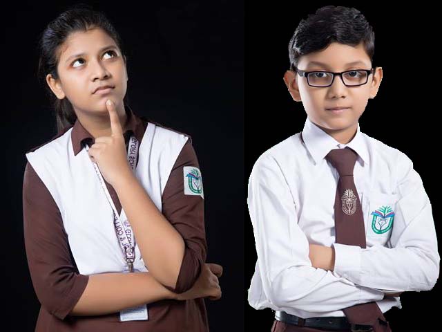 কফি রঙের কামিজ, সাদা সালোয়ার, সাদা ওড়না, সাদা স্কার্ফ, গাঢ় সবুজ রঙের ফুল হাতার সোয়েটার, সাদা মোজা, কালো স্কুল সু, সাদা রুমাল, সাদা পিটি ফ্রক, সাদা পিটি সু।
